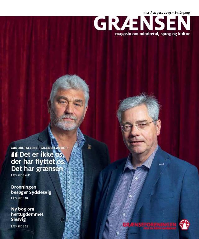 Hent magasinet som PDF Andre artikler i magasinet Interview Postkort fortæller om forholdet til Tyskland Bagside Regentbesøg i Sydslesvig er også politik Kommentar Lad os hejse flaget for det dansk-tyske forhold Leder Velkommen til Sydslesvigudvalget Interview Mindretallene i grænselandet: ”Det er ikke os, der har flyttet os. Det har grænsen” Anmeldelse Sønderjyllands fascinerende historie på 100 sider Interview ”Jeg glemmer aldrig den dag, vi skulle hente Gaby for første gang” Interview Valdemar Rasmussen: "Sønderjylland er en uløselig del af mig" Nyhed Dronningens besøg i Slesvig-Holsten og hos det danske mindretal er på plads