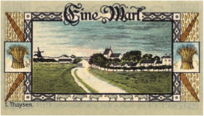 Litteratur: Hans-Joachim und Jutta Kürtz: Für Gold und Silber nimm den Schein. Aus einem Kapitel norddeutscher Geldgeschichte. Lübeck 1981. Karl Lund og Claus Nielsen: Fortegnelse over Nødpengesedler udgivet i Nordslesvig under og umiddelbart efter Første Verdenskrig, 1966.
